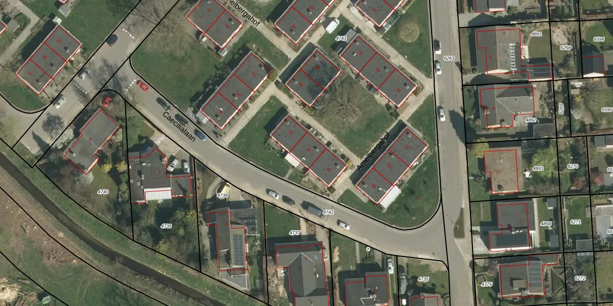 Het perceel waarop Amelbergahof 44 staat heeft een oppervlakte van 8510 m². Dit is een zeer groot perceel. De perceeloppervlakte wordt geregistreerd door het Kadaster. Gedetailleerde informatie over de maten van dit perceel kunt u vinden in het rapport Kadastrale kaart met maatvoering van Amelbergahof 44.