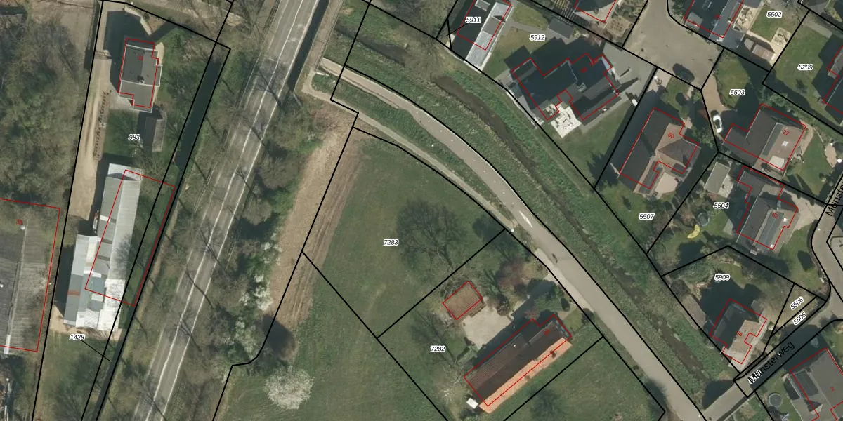 Het adres is gelegen op perceel 7283 in de sectie D en de kadastrale gemeente Susteren. De kadastrale aanduiding is aldus STR01-D-7283. Het perceel is kleiner dan gemiddeld in Susteren. Het perceel is 1305 m² groot, terwijl het gemiddelde ligt op 2467,42 m². De grootste perceeloppervlakte in de kadastrale gemeente is 22,5 ha. De kleinste oppervlakte bedraagt 0 m². Op het perceel bevinden zich geen andere adressen. De huidige grenzen van het perceel zijn digitaal in de Basisregistratie Kadaster (BRK) geregistreerd op 19-12-2023.