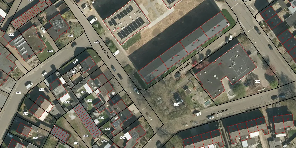 Beatrixlaan 67 is gelegen op kadastraal perceel STR01D4980. Deze kadastrale aanduiding is uniek en wordt gebruikt door het Kadaster om eigendomsrechten en andere zakelijke rechten vast te leggen. Het perceel maakt onderdeel uit van de kadastrale gemeente Susteren.