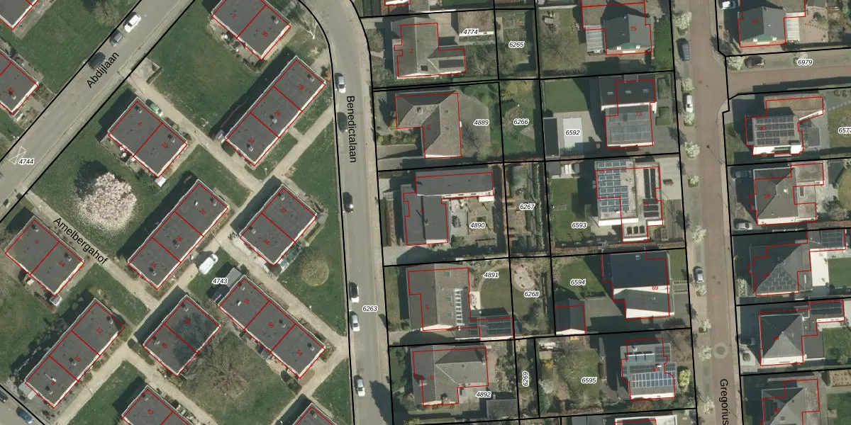 Benedictalaan 4 is gelegen op kadastraal perceel STR01D4890. Deze kadastrale aanduiding is uniek en wordt gebruikt door het Kadaster om eigendomsrechten en andere zakelijke rechten vast te leggen. Het perceel maakt onderdeel uit van de kadastrale gemeente Susteren.