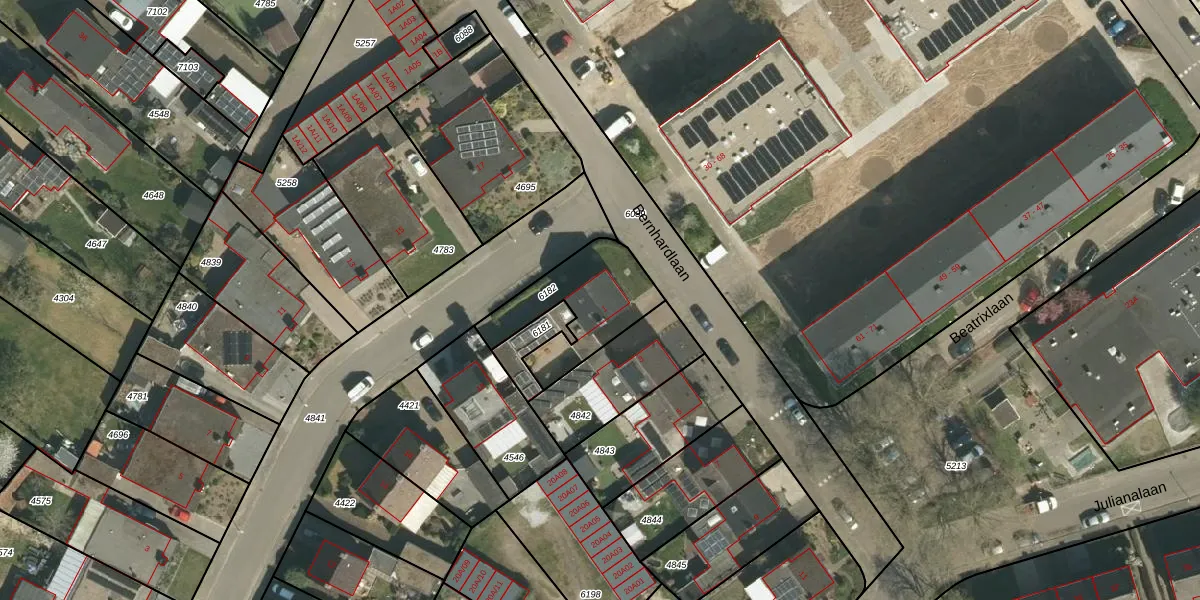 Bernhardlaan 1 is gelegen op kadastraal perceel STR01D6182. Deze kadastrale aanduiding is uniek en wordt gebruikt door het Kadaster om eigendomsrechten en andere zakelijke rechten vast te leggen. Het perceel maakt onderdeel uit van de kadastrale gemeente Susteren.