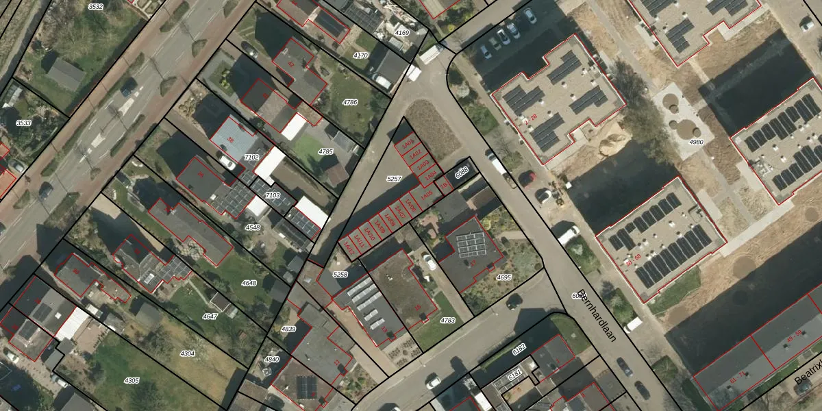 Bernhardlaan 1-A-06 is gelegen op kadastraal perceel STR01D5257. Deze kadastrale aanduiding is uniek en wordt gebruikt door het Kadaster om eigendomsrechten en andere zakelijke rechten vast te leggen. Het perceel maakt onderdeel uit van de kadastrale gemeente Susteren.