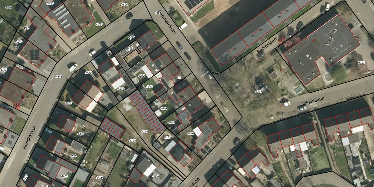 Het adres is gelegen op perceel 4844 in de sectie D en de kadastrale gemeente Susteren. De kadastrale aanduiding is aldus STR01-D-4844. Het perceel is kleiner dan gemiddeld in Susteren. Het perceel is 315 m² groot, terwijl het gemiddelde ligt op 2467,76 m². De grootste perceeloppervlakte in de kadastrale gemeente is 22,5 ha. De kleinste oppervlakte bedraagt 0 m². Op het perceel bevinden zich geen andere adressen. In de Basisregistratie Kadaster (BRK) werden de grenzen van het perceel geregistreerd op 12-12-2011.