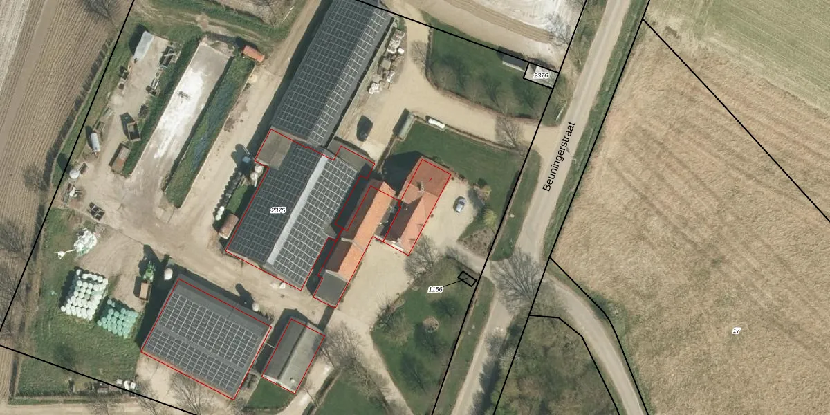 Beuningerstraat 7 is gelegen op kadastraal perceel STR01G2375. Deze kadastrale aanduiding is uniek en wordt gebruikt door het Kadaster om eigendomsrechten en andere zakelijke rechten vast te leggen. Het perceel maakt onderdeel uit van de kadastrale gemeente Susteren.