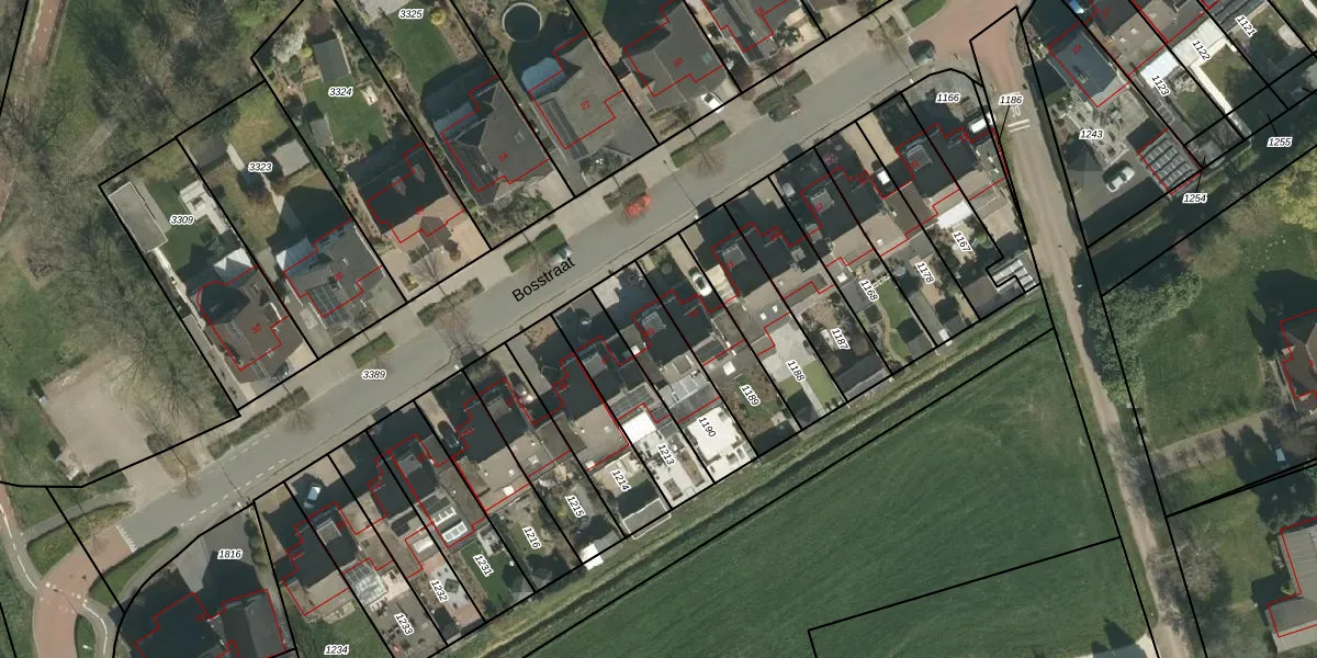 Het perceel waarop Bosstraat 45 staat heeft een oppervlakte van 277 m². Dit is een middelgroot perceel. De perceeloppervlakte wordt geregistreerd door het Kadaster. Gedetailleerde informatie over de maten van dit perceel kunt u vinden in het rapport Kadastrale kaart met maatvoering van Bosstraat 45.