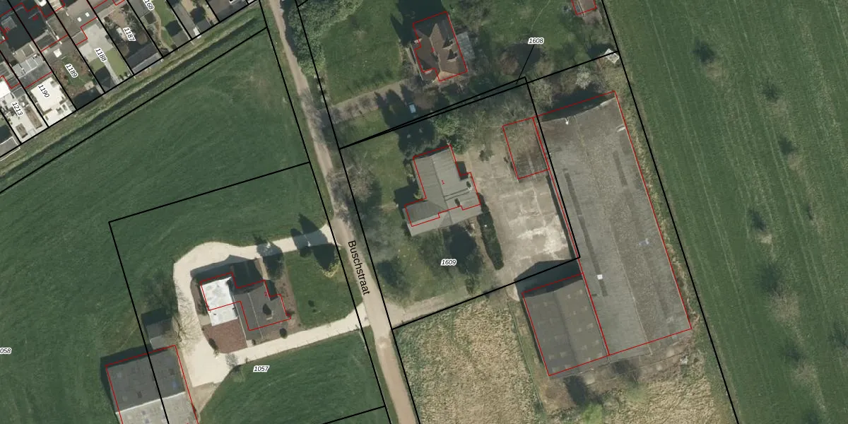 Buschstraat 1 is gelegen op kadastraal perceel STR01H1609. Deze kadastrale aanduiding is uniek en wordt gebruikt door het Kadaster om eigendomsrechten en andere zakelijke rechten vast te leggen. Het perceel maakt onderdeel uit van de kadastrale gemeente Susteren.