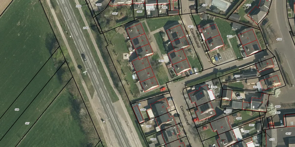 Corneliushof 13 is gelegen op kadastraal perceel STR01F3472. Deze kadastrale aanduiding is uniek en wordt gebruikt door het Kadaster om eigendomsrechten en andere zakelijke rechten vast te leggen. Het perceel maakt onderdeel uit van de kadastrale gemeente Susteren.