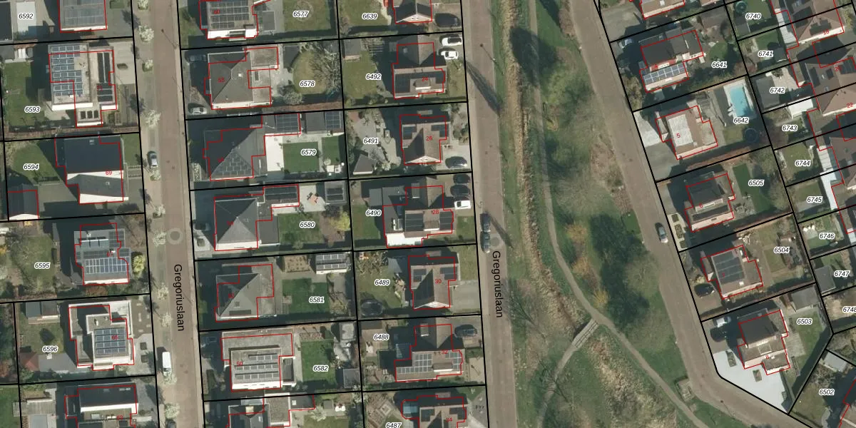 Gregoriuslaan 28 is gelegen op kadastraal perceel STR01D6490. Deze kadastrale aanduiding is uniek en wordt gebruikt door het Kadaster om eigendomsrechten en andere zakelijke rechten vast te leggen. Het perceel maakt onderdeel uit van de kadastrale gemeente Susteren.