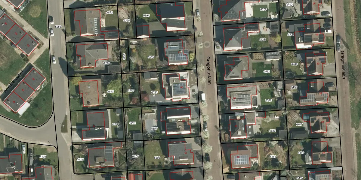 Gregoriuslaan 65 is gelegen op kadastraal perceel STR01D6596. Deze kadastrale aanduiding is uniek en wordt gebruikt door het Kadaster om eigendomsrechten en andere zakelijke rechten vast te leggen. Het perceel maakt onderdeel uit van de kadastrale gemeente Susteren.