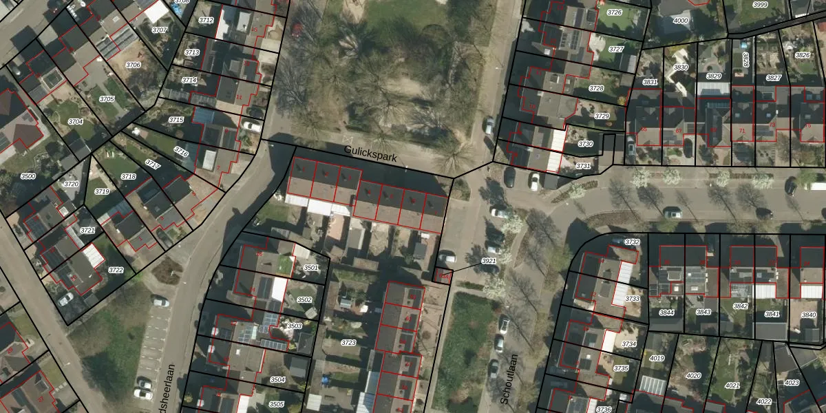 Het perceel waarop Gulickspark 6 staat heeft een oppervlakte van 2820 m². Dit is een zeer groot perceel. De perceeloppervlakte wordt geregistreerd door het Kadaster. Gedetailleerde informatie over de maten van dit perceel kunt u vinden in het rapport Kadastrale kaart met maatvoering van Gulickspark 6.