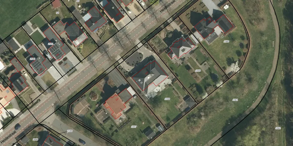 Heidestraat 112 is gelegen op kadastraal perceel STR01H1558. Deze kadastrale aanduiding is uniek en wordt gebruikt door het Kadaster om eigendomsrechten en andere zakelijke rechten vast te leggen. Het perceel maakt onderdeel uit van de kadastrale gemeente Susteren.