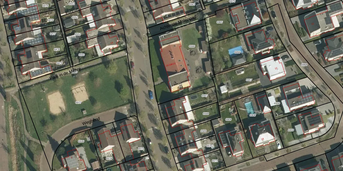 Het adres is gelegen op perceel 6566 in de sectie D en de kadastrale gemeente Susteren. De kadastrale aanduiding is aldus STR01-D-6566. Het perceel is kleiner dan gemiddeld in Susteren. Het perceel is 1387 m² groot, terwijl het gemiddelde ligt op 2467,42 m². Het grootste perceel in de kadastrale gemeente is 22,5 ha. Het kleinste perceel heeft een oppervlakte van 0 m². Er zijn 19 adressen aanwezig op het perceel. De huidige grenzen van het perceel zijn digitaal in de Basisregistratie Kadaster (BRK) geregistreerd op 23-12-2011.