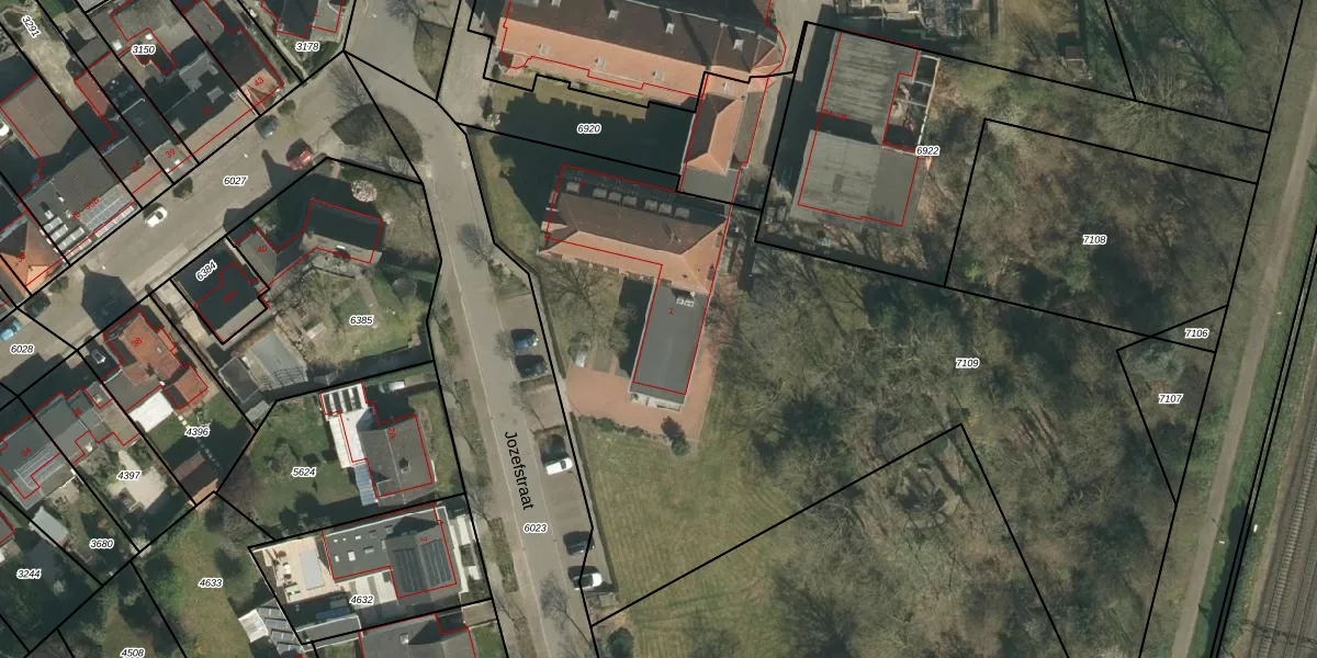 Jozefstraat 1 is gelegen op kadastraal perceel STR01D7109. Deze kadastrale aanduiding is uniek en wordt gebruikt door het Kadaster om eigendomsrechten en andere zakelijke rechten vast te leggen. Het perceel maakt onderdeel uit van de kadastrale gemeente Susteren.