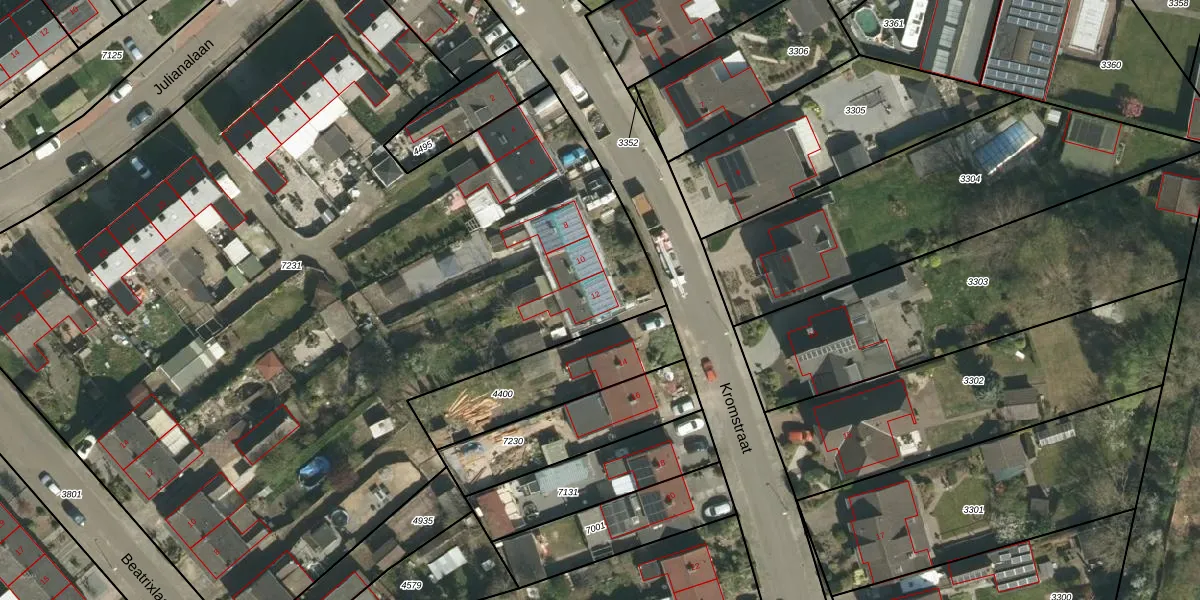Kromstraat 12 is gelegen op kadastraal perceel STR01D7231. Deze kadastrale aanduiding is uniek en wordt gebruikt door het Kadaster om eigendomsrechten en andere zakelijke rechten vast te leggen. Het perceel maakt onderdeel uit van de kadastrale gemeente Susteren.