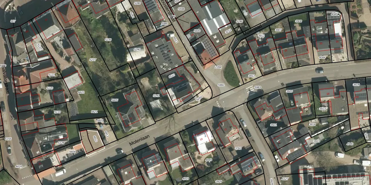 Molenlaan 13 is gelegen op kadastraal perceel STR01D6512. Deze kadastrale aanduiding is uniek en wordt gebruikt door het Kadaster om eigendomsrechten en andere zakelijke rechten vast te leggen. Het perceel maakt onderdeel uit van de kadastrale gemeente Susteren.