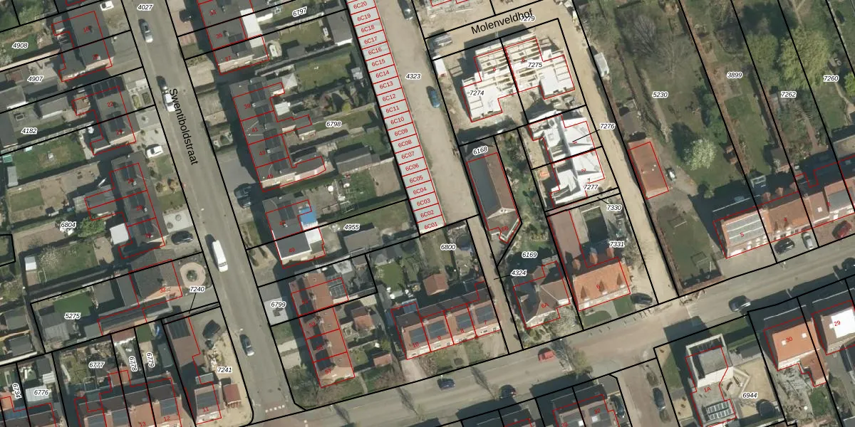 Molenveldweg 6-C-02 is gelegen op kadastraal perceel STR01D4323. Deze kadastrale aanduiding is uniek en wordt gebruikt door het Kadaster om eigendomsrechten en andere zakelijke rechten vast te leggen. Het perceel maakt onderdeel uit van de kadastrale gemeente Susteren.