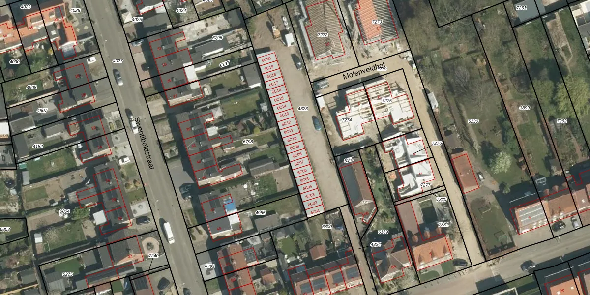 Molenveldweg 6-C-09 is gelegen op kadastraal perceel STR01D4323. Deze kadastrale aanduiding is uniek en wordt gebruikt door het Kadaster om eigendomsrechten en andere zakelijke rechten vast te leggen. Het perceel maakt onderdeel uit van de kadastrale gemeente Susteren.