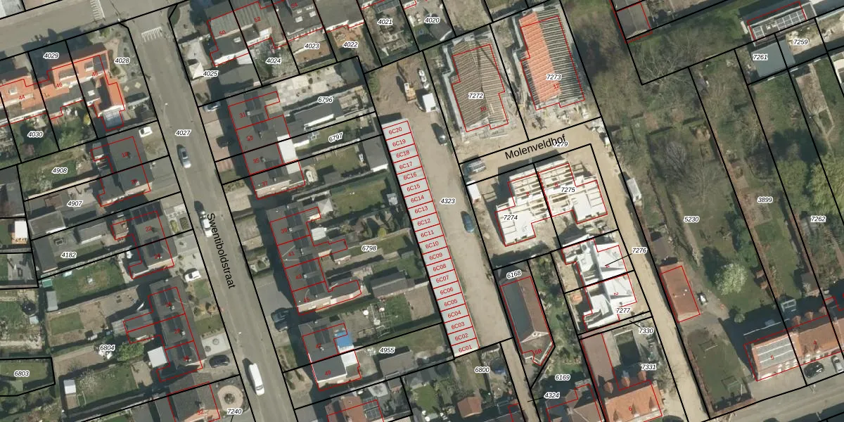 Molenveldweg 6-C-13 is gelegen op kadastraal perceel STR01D4323. Deze kadastrale aanduiding is uniek en wordt gebruikt door het Kadaster om eigendomsrechten en andere zakelijke rechten vast te leggen. Het perceel maakt onderdeel uit van de kadastrale gemeente Susteren.