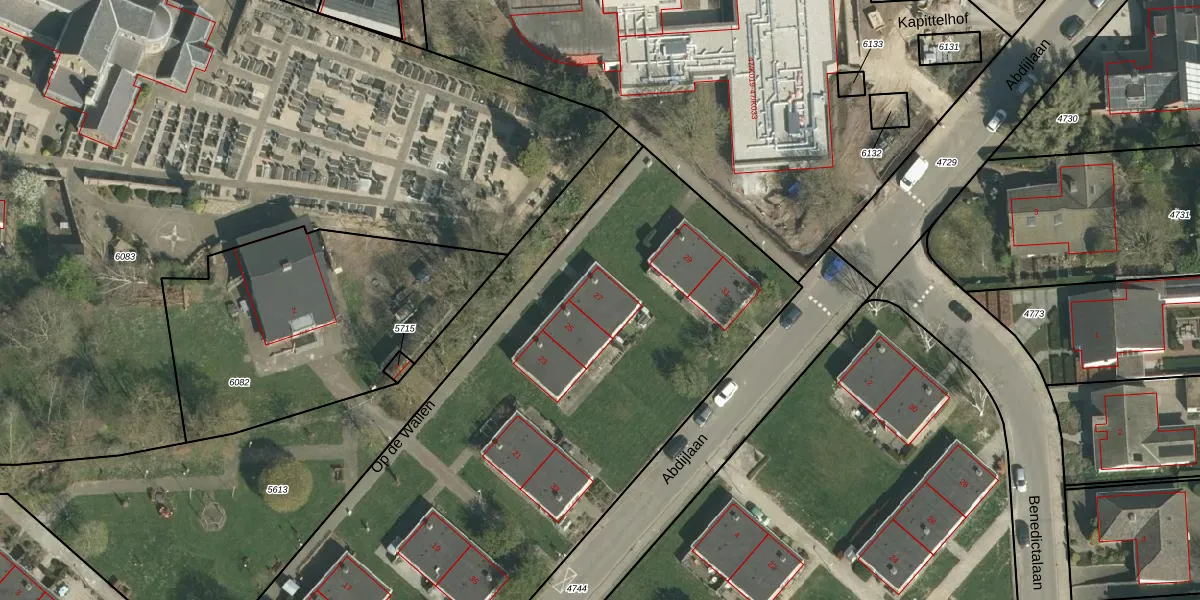 Het perceel waarop Op de Wallen 27 staat heeft een oppervlakte van 6110 m². Dit is een zeer groot perceel. De perceeloppervlakte wordt geregistreerd door het Kadaster. Gedetailleerde informatie over de maten van dit perceel kunt u vinden in het rapport Kadastrale kaart met maatvoering van Op de Wallen 27.