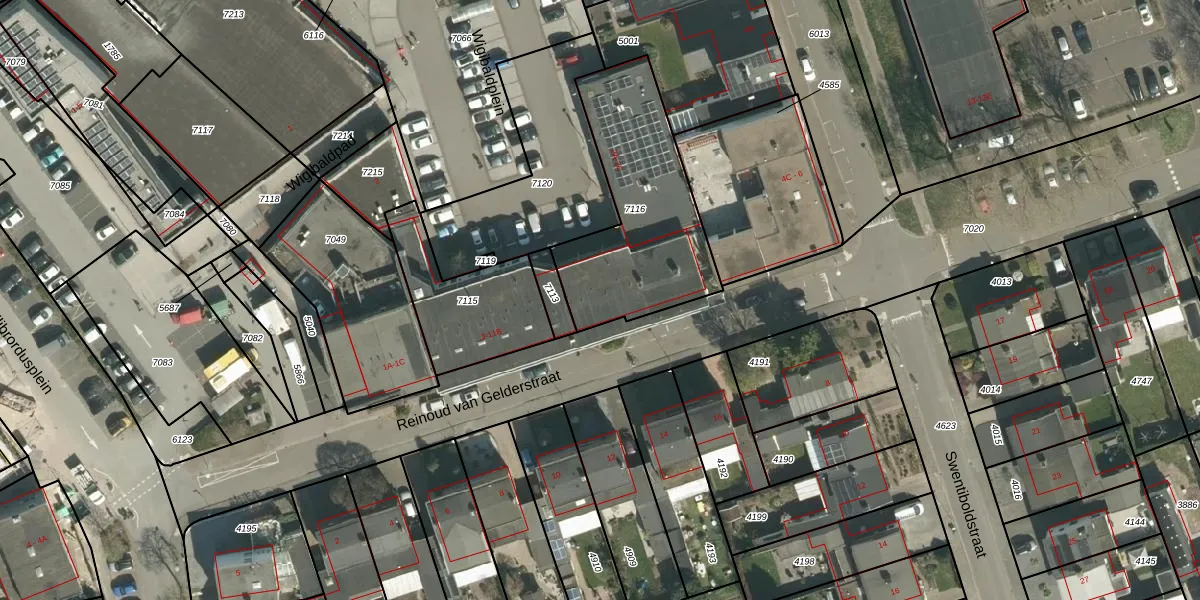 Reinoud van Gelderstraat 9 is gelegen op kadastraal perceel STR01D7116. Deze kadastrale aanduiding is uniek en wordt gebruikt door het Kadaster om eigendomsrechten en andere zakelijke rechten vast te leggen. Het perceel maakt onderdeel uit van de kadastrale gemeente Susteren.