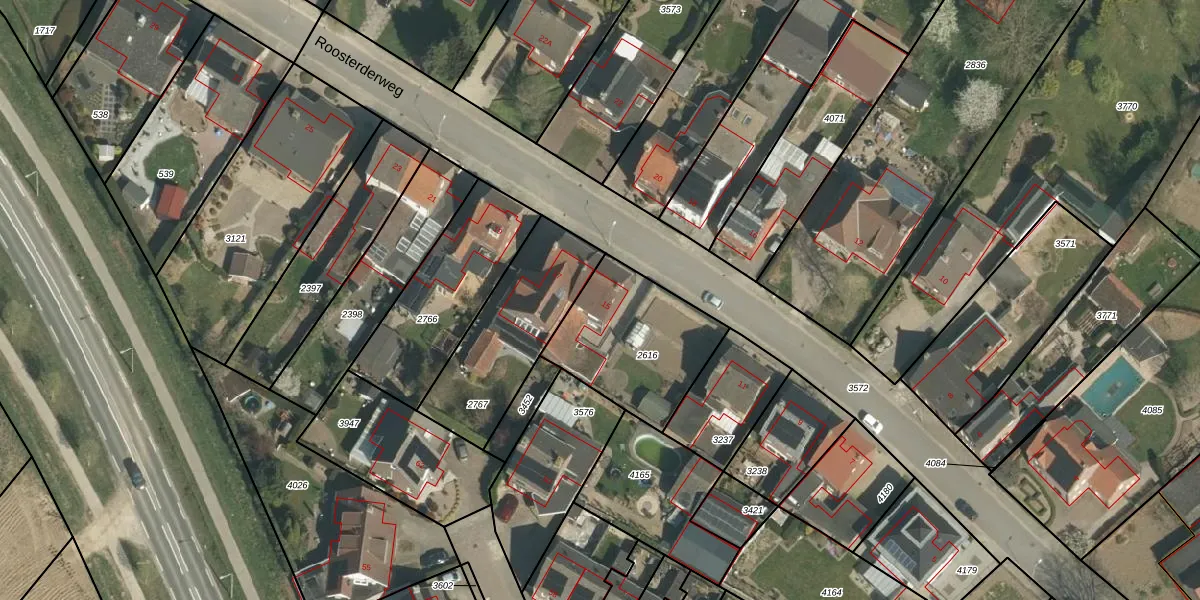 Roosterderweg 15 is gelegen op kadastraal perceel STR01F2616. Deze kadastrale aanduiding is uniek en wordt gebruikt door het Kadaster om eigendomsrechten en andere zakelijke rechten vast te leggen. Het perceel maakt onderdeel uit van de kadastrale gemeente Susteren.