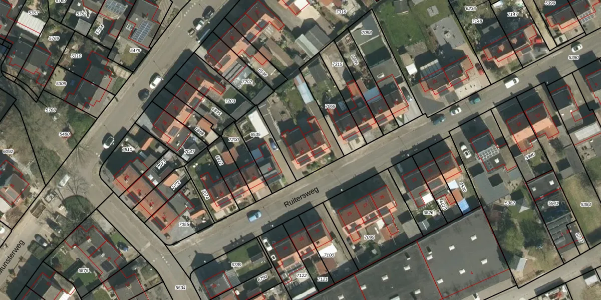 Ruitersweg 32 is gelegen op kadastraal perceel STR01D7316. Deze kadastrale aanduiding is uniek en wordt gebruikt door het Kadaster om eigendomsrechten en andere zakelijke rechten vast te leggen. Het perceel maakt onderdeel uit van de kadastrale gemeente Susteren.
