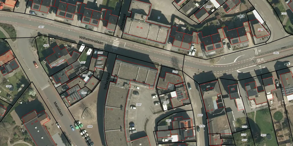 Schoolpad 18 is gelegen op kadastraal perceel STR01D7007. Deze kadastrale aanduiding is uniek en wordt gebruikt door het Kadaster om eigendomsrechten en andere zakelijke rechten vast te leggen. Het perceel maakt onderdeel uit van de kadastrale gemeente Susteren.