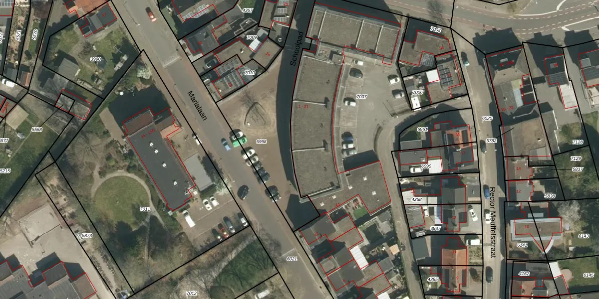Schoolpad 5 is gelegen op kadastraal perceel STR01D7007. Deze kadastrale aanduiding is uniek en wordt gebruikt door het Kadaster om eigendomsrechten en andere zakelijke rechten vast te leggen. Het perceel maakt onderdeel uit van de kadastrale gemeente Susteren.