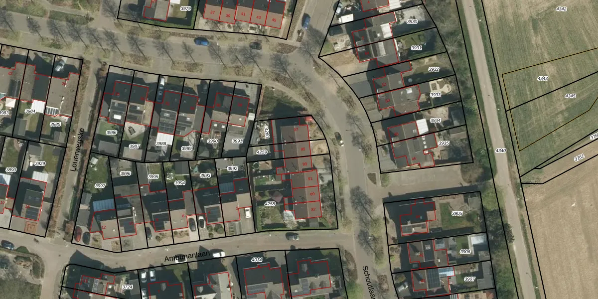 Schoutlaan 95 is gelegen op kadastraal perceel STR01F4259. Deze kadastrale aanduiding is uniek en wordt gebruikt door het Kadaster om eigendomsrechten en andere zakelijke rechten vast te leggen. Het perceel maakt onderdeel uit van de kadastrale gemeente Susteren.