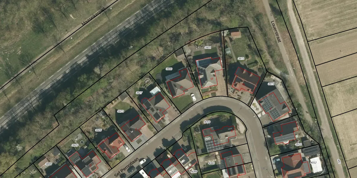 Sef Pernotlaan 21 is gelegen op kadastraal perceel STR01F3900. Deze kadastrale aanduiding is uniek en wordt gebruikt door het Kadaster om eigendomsrechten en andere zakelijke rechten vast te leggen. Het perceel maakt onderdeel uit van de kadastrale gemeente Susteren.