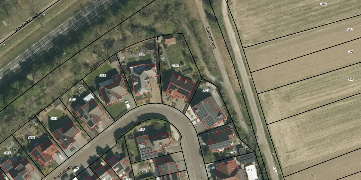 Sef Pernotlaan 25 is gelegen op kadastraal perceel STR01F3972. Deze kadastrale aanduiding is uniek en wordt gebruikt door het Kadaster om eigendomsrechten en andere zakelijke rechten vast te leggen. Het perceel maakt onderdeel uit van de kadastrale gemeente Susteren.