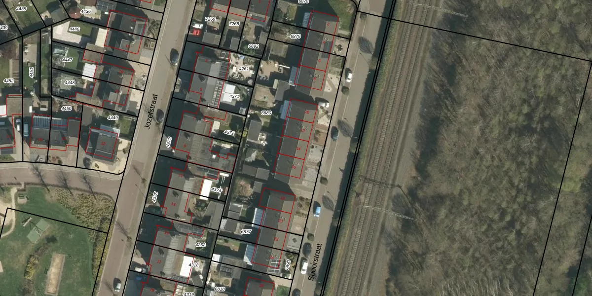 Spoorstraat 14 is gelegen op kadastraal perceel STR01D6880. Deze kadastrale aanduiding is uniek en wordt gebruikt door het Kadaster om eigendomsrechten en andere zakelijke rechten vast te leggen. Het perceel maakt onderdeel uit van de kadastrale gemeente Susteren.