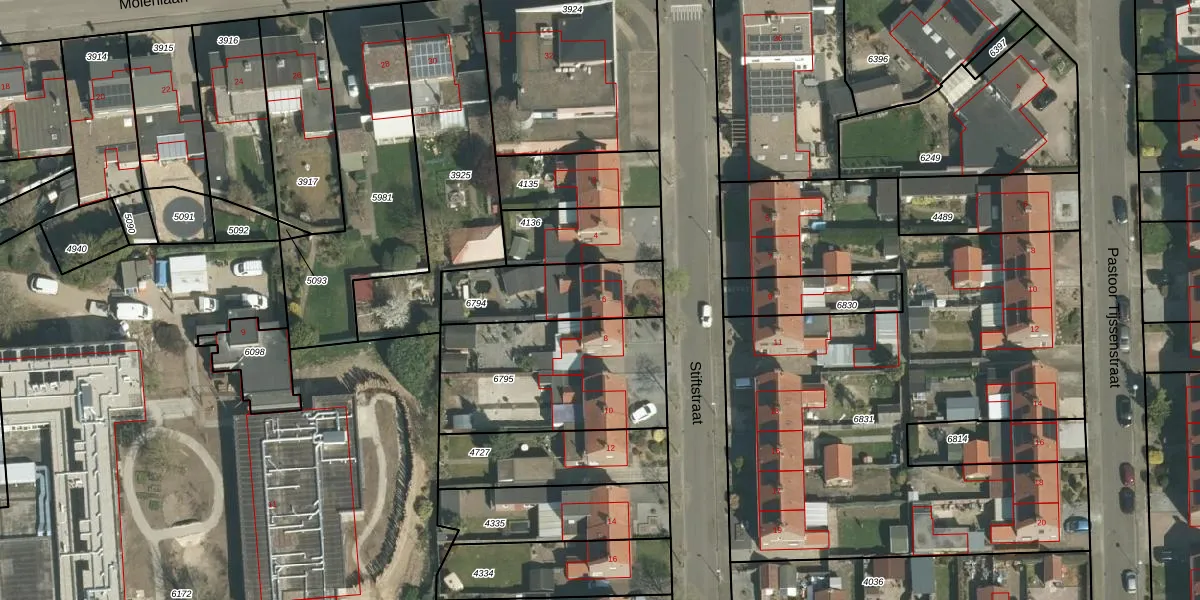 Gebruik de zoekbalk of klik op een perceel voor informatie over de adressen binnen dit perceel.