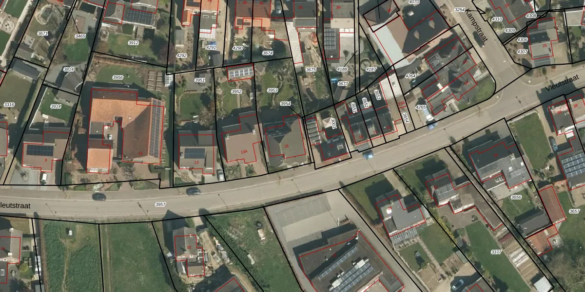 Vleutstraat 15 is gelegen op kadastraal perceel STR01F3953. Deze kadastrale aanduiding is uniek en wordt gebruikt door het Kadaster om eigendomsrechten en andere zakelijke rechten vast te leggen. Het perceel maakt onderdeel uit van de kadastrale gemeente Susteren.