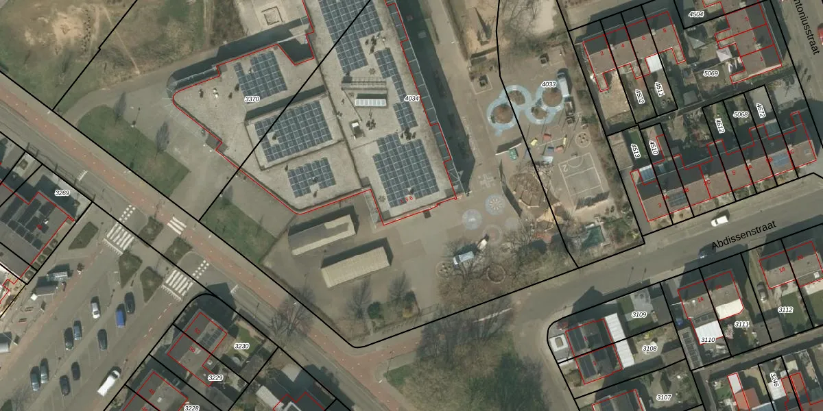 Het perceel waarop Abdissenstraat 1 staat heeft een oppervlakte van 6403 m². Dit is een zeer groot perceel. De perceeloppervlakte wordt geregistreerd door het Kadaster. Gedetailleerde informatie over de maten van dit perceel kunt u vinden in het rapport Kadastrale kaart met maatvoering van Abdissenstraat 1.