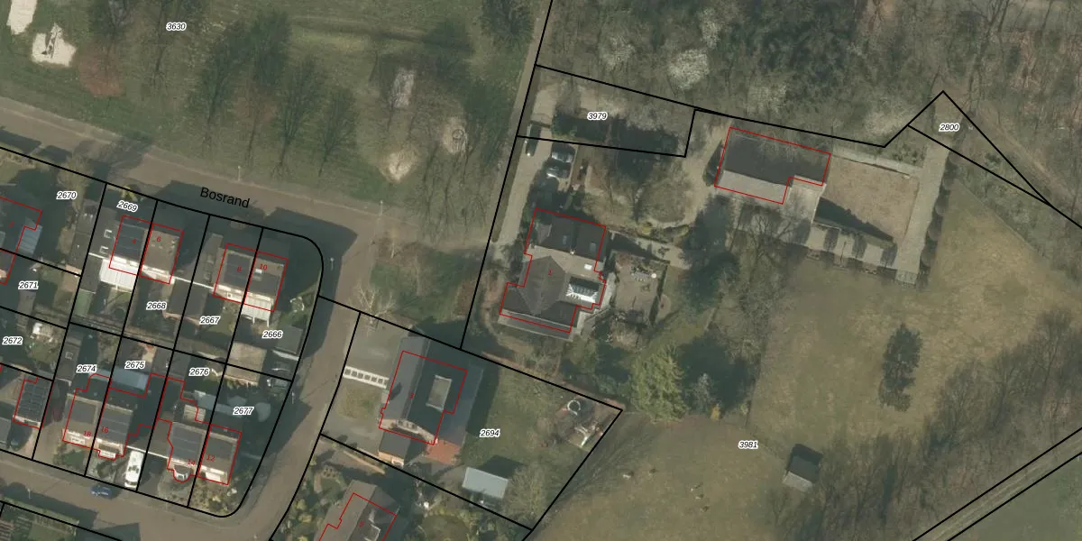 Bosrand 1 is gelegen op kadastraal perceel SMN02C3981. Deze kadastrale aanduiding is uniek en wordt gebruikt door het Kadaster om eigendomsrechten en andere zakelijke rechten vast te leggen. Het perceel maakt onderdeel uit van de kadastrale gemeente Swalmen.