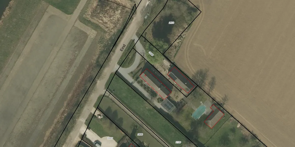 Het perceel waarop Eind 30 staat heeft een oppervlakte van 5767 m². Dit is een zeer groot perceel. De perceeloppervlakte wordt geregistreerd door het Kadaster. Gedetailleerde informatie over de maten van dit perceel kunt u vinden in het rapport Kadastrale kaart met maatvoering van Eind 30.
