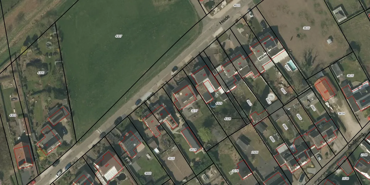 Het perceel waarop Heide 48 staat heeft een oppervlakte van 620 m². Dit is een groot perceel. De perceeloppervlakte wordt geregistreerd door het Kadaster. Gedetailleerde informatie over de maten van dit perceel kunt u vinden in het rapport Kadastrale kaart met maatvoering van Heide 48.