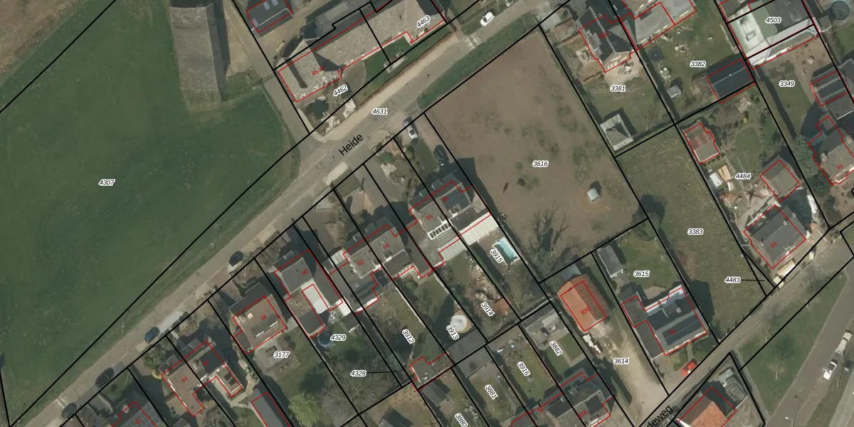 Het perceel waarop Heide 56 staat heeft een oppervlakte van 485 m². Dit is een groot perceel. De perceeloppervlakte wordt geregistreerd door het Kadaster. Gedetailleerde informatie over de maten van dit perceel kunt u vinden in het rapport Kadastrale kaart met maatvoering van Heide 56.