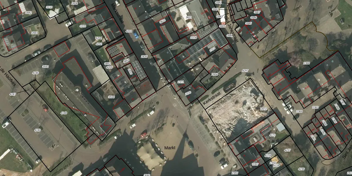 Het perceel waarop Markt 14 staat heeft een oppervlakte van 135 m². Dit is een middelgroot perceel. De perceeloppervlakte wordt geregistreerd door het Kadaster. Gedetailleerde informatie over de maten van dit perceel kunt u vinden in het rapport Kadastrale kaart met maatvoering van Markt 14.