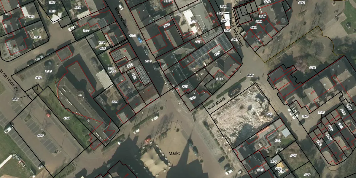 Het perceel waarop Markt 14-A staat heeft een oppervlakte van 135 m². Dit is een middelgroot perceel. De perceeloppervlakte wordt geregistreerd door het Kadaster. Gedetailleerde informatie over de maten van dit perceel kunt u vinden in het rapport Kadastrale kaart met maatvoering van Markt 14-A.