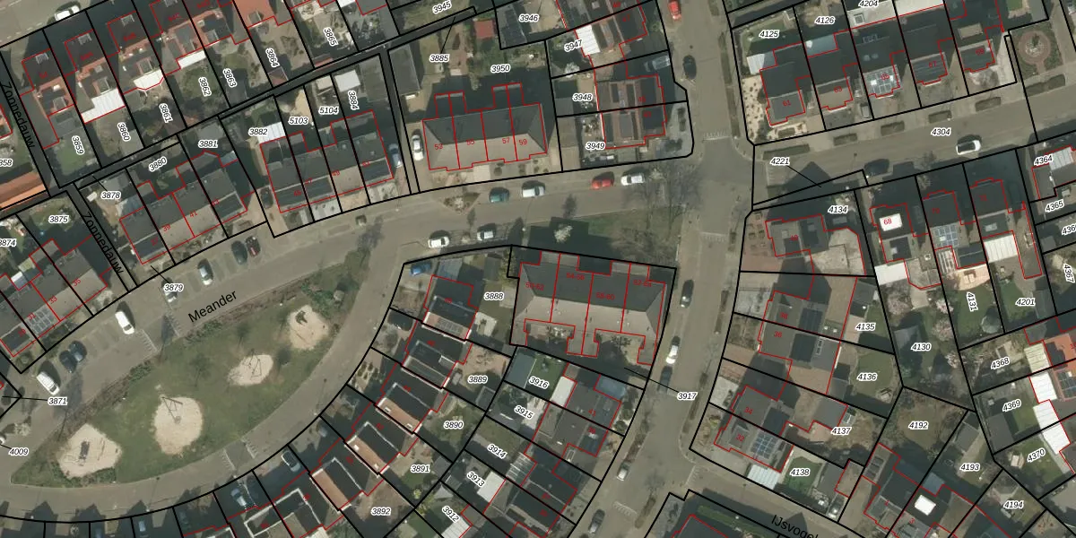 Het perceel waarop Meander 50 staat heeft een oppervlakte van 585 m². Dit is een groot perceel. De perceeloppervlakte wordt geregistreerd door het Kadaster. Gedetailleerde informatie over de maten van dit perceel kunt u vinden in het rapport Kadastrale kaart met maatvoering van Meander 50.