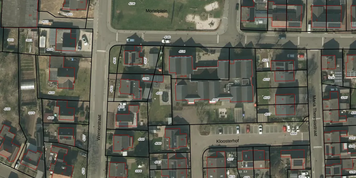 Mortelplein 1-B-8 is gelegen op kadastraal perceel SMN02A4497. Deze kadastrale aanduiding is uniek en wordt gebruikt door het Kadaster om eigendomsrechten en andere zakelijke rechten vast te leggen. Het perceel maakt onderdeel uit van de kadastrale gemeente Swalmen.