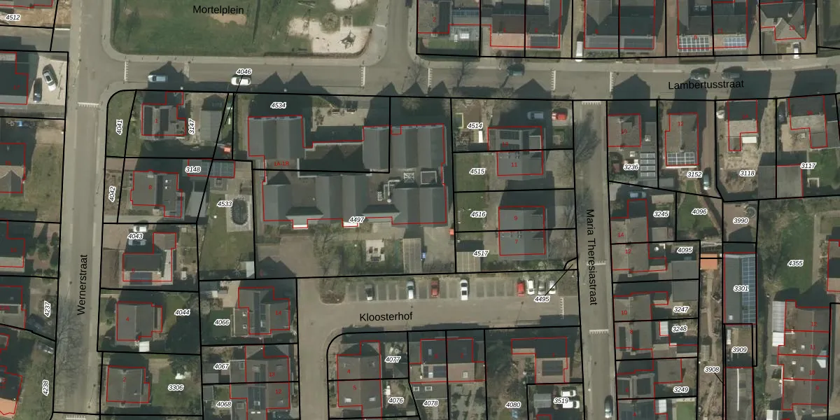 Mortelplein 1-B-1 is gelegen op kadastraal perceel SMN02A4497. Deze kadastrale aanduiding is uniek en wordt gebruikt door het Kadaster om eigendomsrechten en andere zakelijke rechten vast te leggen. Het perceel maakt onderdeel uit van de kadastrale gemeente Swalmen.