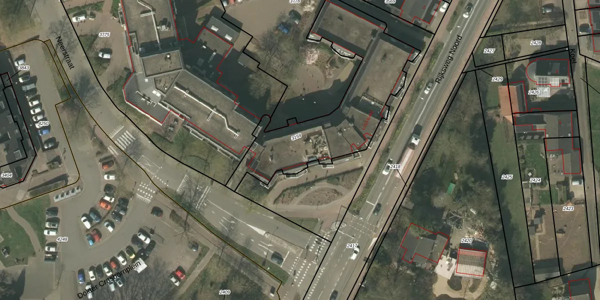 Het adres is gelegen op perceel 3159 in de sectie C en de kadastrale gemeente Swalmen. De kadastrale aanduiding is aldus SMN02-C-3159. De gemiddelde perceelgrootte in Swalmen is 3668,16 m². Dit perceel is kleiner: de perceeloppervlakte bedraagt 1405 m². Het grootste perceel in de kadastrale gemeente is 46,5 ha. Het kleinste perceel heeft een oppervlakte van 0 m². Er zijn 38 adressen aanwezig op het perceel. De huidige grenzen van het perceel zijn digitaal in de Basisregistratie Kadaster (BRK) geregistreerd op 20-12-2007.
