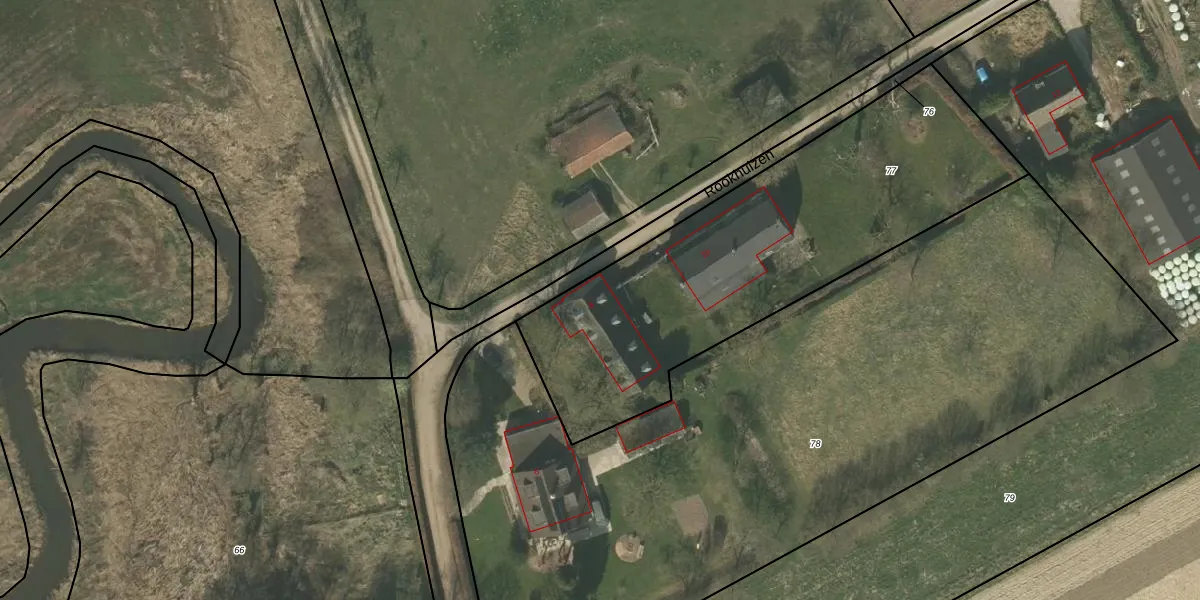 Het perceel waarop Rookhuizen 8 staat heeft een oppervlakte van 1893 m². Dit is een zeer groot perceel. De perceeloppervlakte wordt geregistreerd door het Kadaster. Gedetailleerde informatie over de maten van dit perceel kunt u vinden in het rapport Kadastrale kaart met maatvoering van Rookhuizen 8.