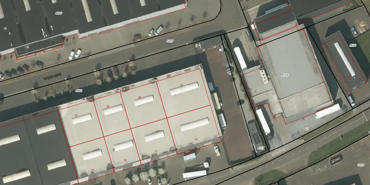Het perceel waarop Voorveld 2-F staat heeft een oppervlakte van 1,1 ha. Dit is een zeer groot perceel. De perceeloppervlakte wordt geregistreerd door het Kadaster. Gedetailleerde informatie over de maten van dit perceel kunt u vinden in het rapport Kadastrale kaart met maatvoering van Voorveld 2-F.