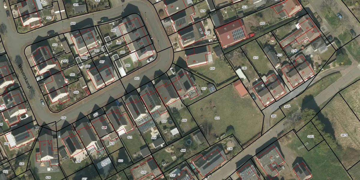 Het perceel waarop Weverskamp 36 staat heeft een oppervlakte van 340 m². Dit is een groot perceel. De perceeloppervlakte wordt geregistreerd door het Kadaster. Gedetailleerde informatie over de maten van dit perceel kunt u vinden in het rapport Kadastrale kaart met maatvoering van Weverskamp 36.
