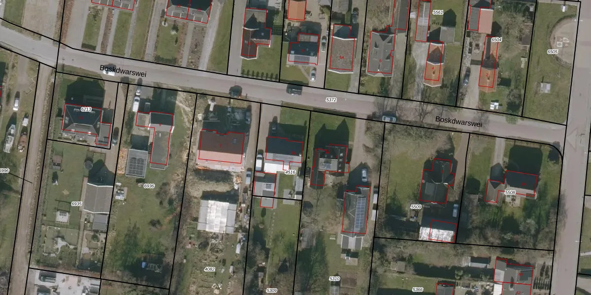 Gebruik de zoekbalk of klik op een perceel voor informatie over de adressen binnen dit perceel.