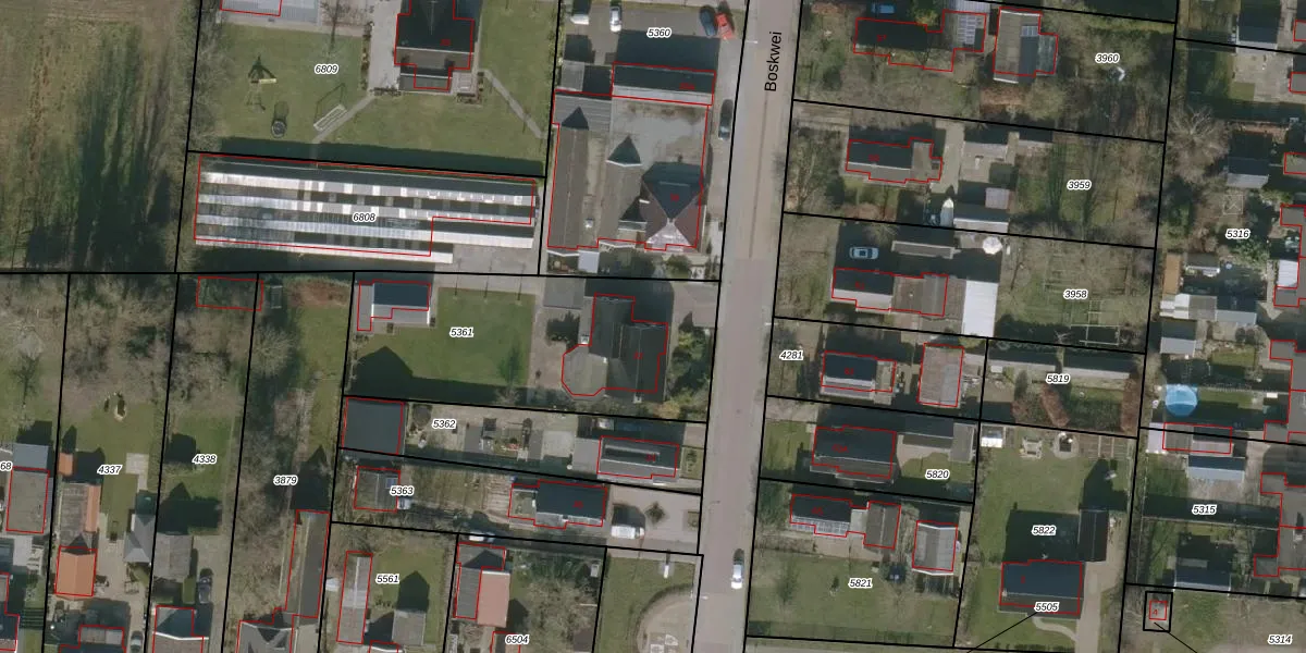 Gebruik de zoekbalk of klik op een perceel voor informatie over de adressen binnen dit perceel.